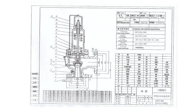 A42Y彈簧全啟封閉式安全閥 :A42Y彈簧全啟封閉式安全閥適用于工作溫度≤300℃空氣、石油氣、液體等介質(zhì)的設(shè)備和管路上。不銹鋼彈簧全啟封閉式安全閥適用于工作溫度≤200℃有腐蝕性的介質(zhì)的設(shè)備和管路上,作為超壓保護(hù)裝置。彈簧全啟式安全閥連接法蘭標(biāo)準(zhǔn)按JB/T……-94系列1!6.4MPa按JB/T……-94系列2。