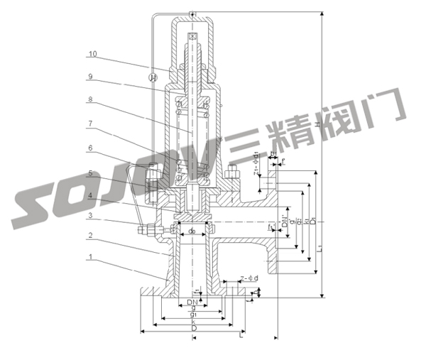 彈簧全啟式安全閥外形尺寸和連接尺寸