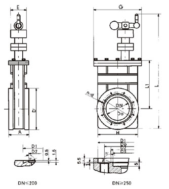 | Model 型號 | DN | A | H | D | Do | D1 | D2 | D3 | L | L1 | G | E | n-d | 法蘭標準 |