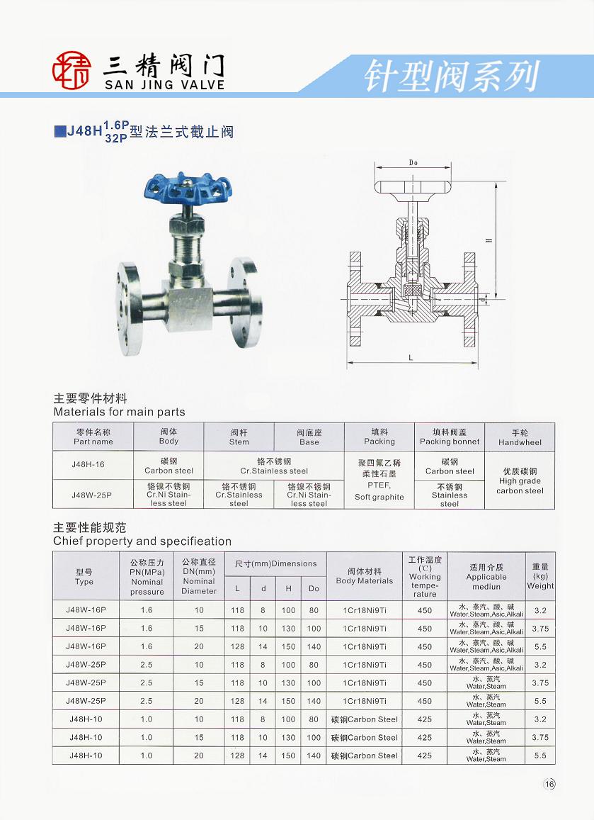 法蘭式截止閥(針型閥)參數及尺寸圖