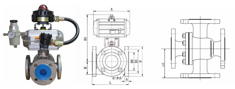 氣動四通球閥可同時對兩種介質(zhì)的流向進行切換,替代了以前四個閥門的復(fù)雜操作,解除了所占空間大、成本高、操作煩瑣等問題,實現(xiàn)一閥多用的效果。氣動四通球閥為X形垂直通道,它的特點是球體的兩條通道為X形布置,四個通道口徑均布于球體赤道圓周截面上,當(dāng)球體沿順時針旋轉(zhuǎn)90時,能使相對的兩個通道實現(xiàn)兩兩互通。