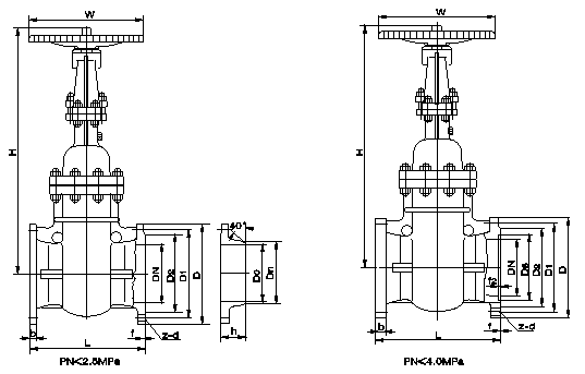 | 公稱通徑 DN/mm Nominal diameter | 公稱壓力 PN/MPa Nominal pressure | 主要外形尺寸和連接尺寸/mm Mainexternalandconnectingdimensions | 閥門 重量 /kg Valve weight | 附法蘭尺寸/mm Additional flange's dimensions | ||||||||||
